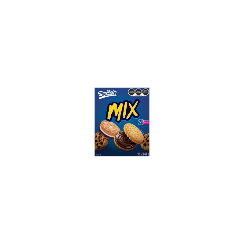 Este mix de Marinela es el mejor complemento para tus reuniones, su práctica presentación tiene variedad de sabor y contenido. Es perfecto para completar el lunch. Contiene galletas: Príncipe, Platívolos y Triki trakes. Adicionado con vitaminas y minerales. Empaque individual. . Presentación: 28 paquetes de 3 galletas . Clave: 128253. Marca: Marinela