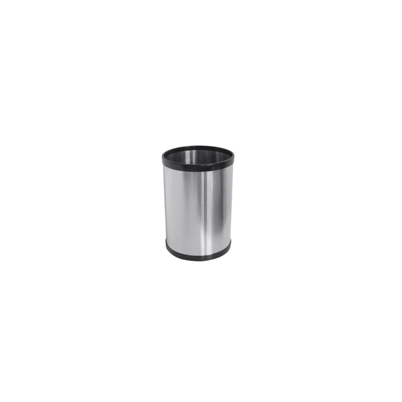 Basurero con protectores plásticos en FONDO y PARTE SUPERIOR. De fácil manejo, económico, y resistente a la corrosión. Indicado para usos múltiples: Interior, oficinas, despachos, consultas, etc.,Dimensiones en mm: Altura: 300 Diámetro: 220 Las dimensiones están en pulgadas: Altura: 11,81 pulgadas Diámetro: 8,66 pulgadas Capacidad: 10,25 litros / 2,7 galone Número de problemas: no aplicable Peso: 1,9 kg/4,19 libras. Contenido por caja: 8 paquetes. Acabado: Liso Marca: Jofel. Color:Acero Modelo:BI70190